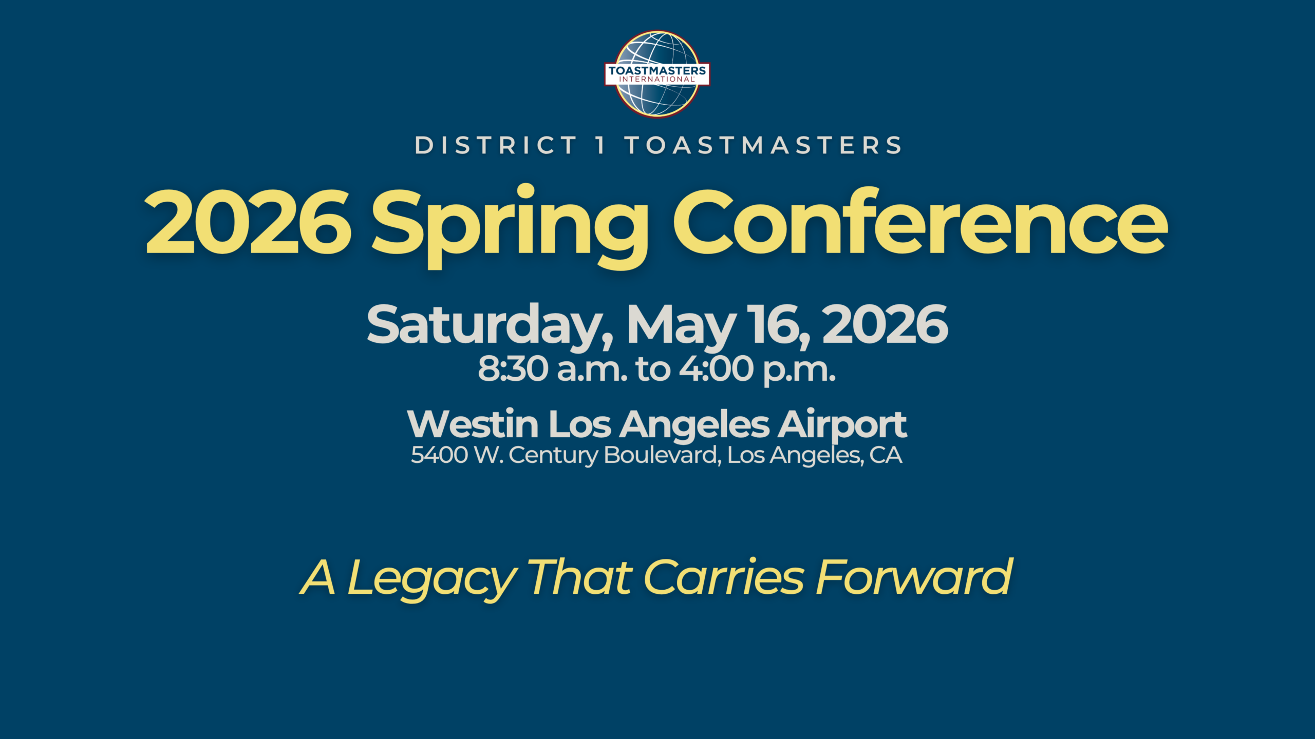 Copyright 2023 © District One Toastmasters All rights reserved.Privacy Policy