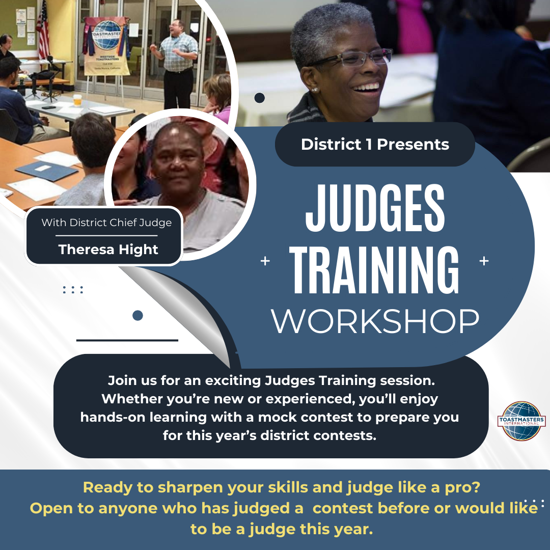 Whether you’re a first-time judge or a seasoned pro, this training will review expectations, best practices, and help you judge with confidence and integrity. Your support helps ensure fair, high-quality contests across District 1!