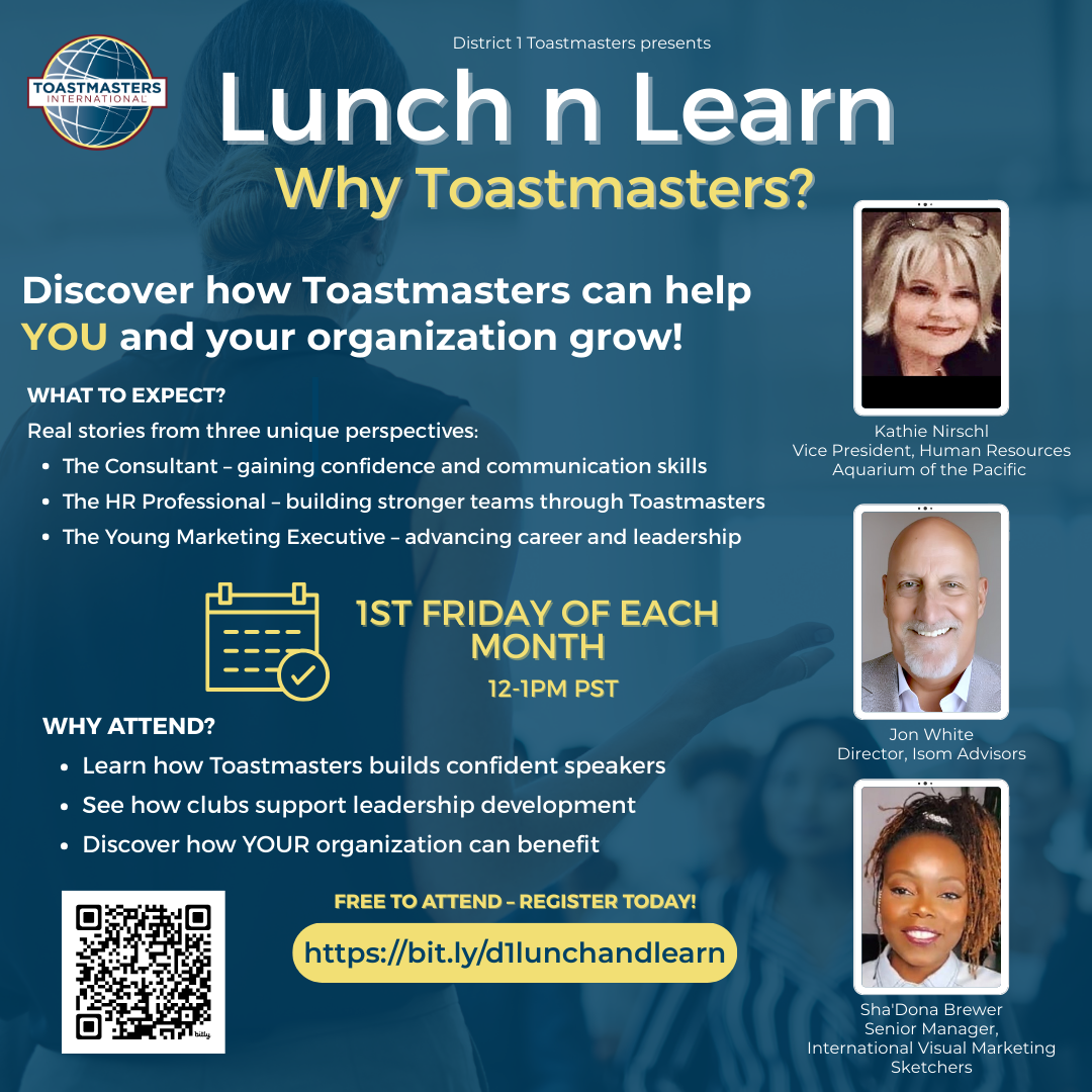 For more information contact Club Growth at: club.growth@district1toastmasters.org