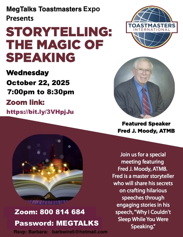 MEGTALKS EXPO PRESENTS STORYTELLING: THE MAGIC OF SPEAKING Join Us for THE MEGTALKS EXPO! STORYTELLING: THE MAGIC OF SPEAKING.