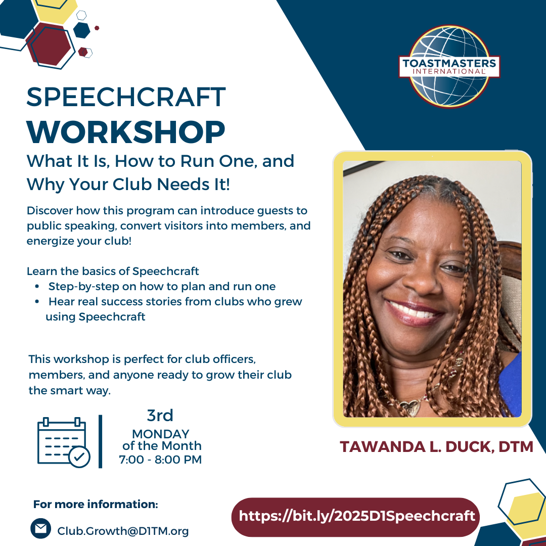 Join us and learn how to make Speechcraft a successful and rewarding program in your club or community!
